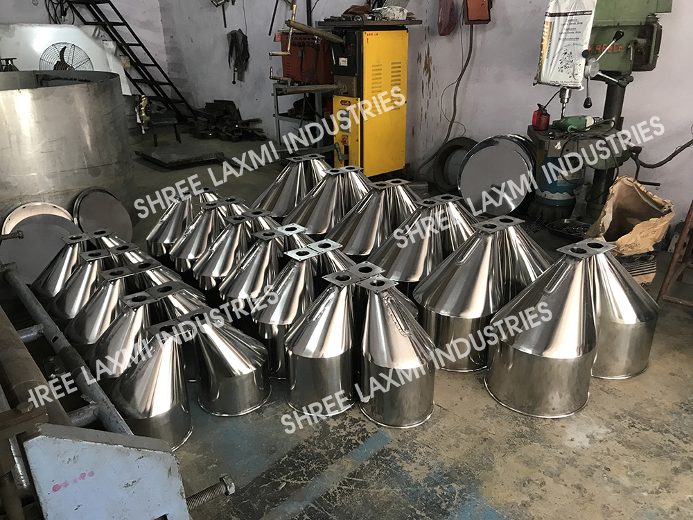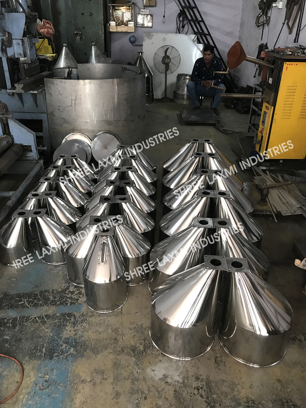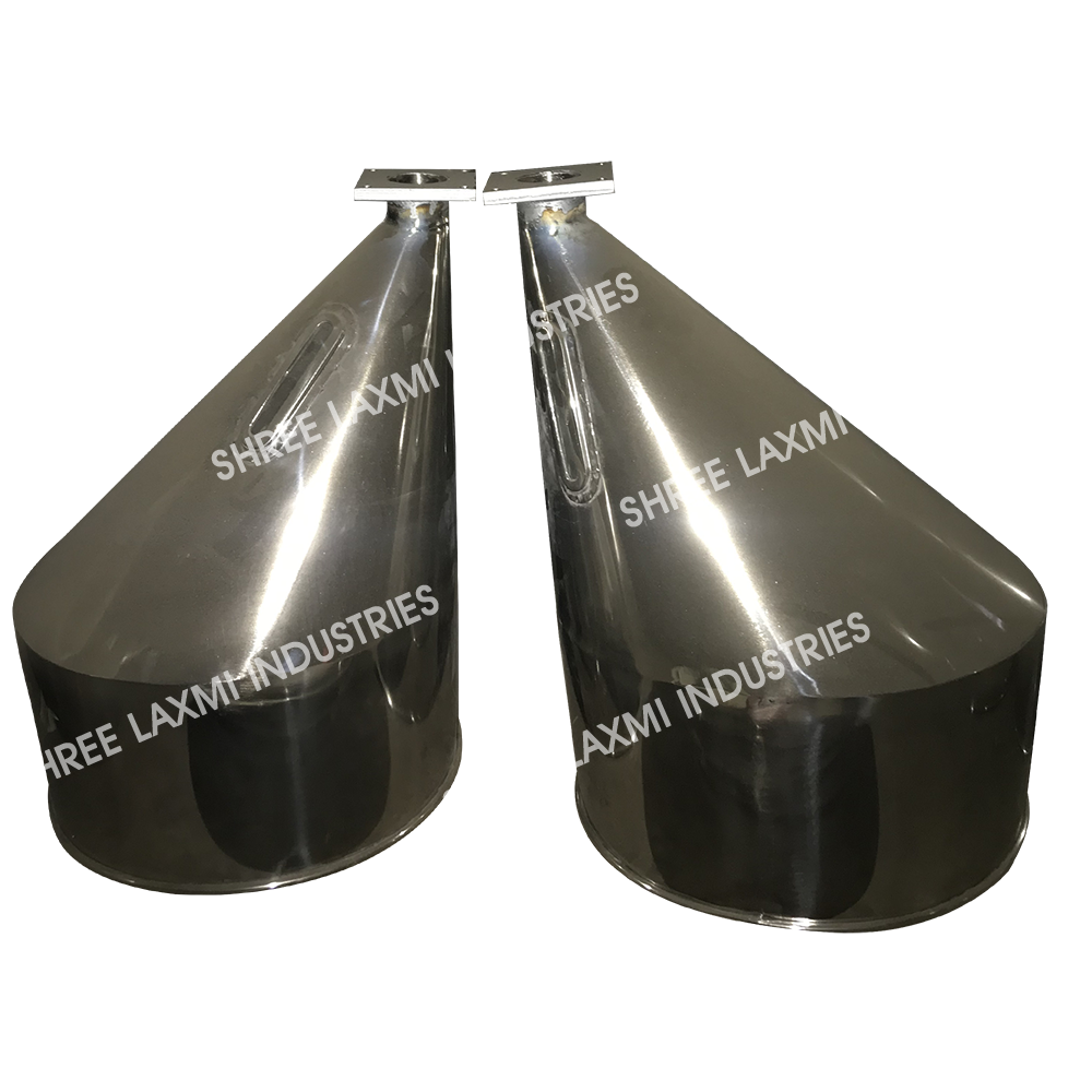 Fabrication Detail: Upper part of hopper is a rectangular shape with curved surface, and bottom part is made with narrow oval shape. Internal finishing of hopper given mirror and external finishing of hopper is matted or as per customize requirement.