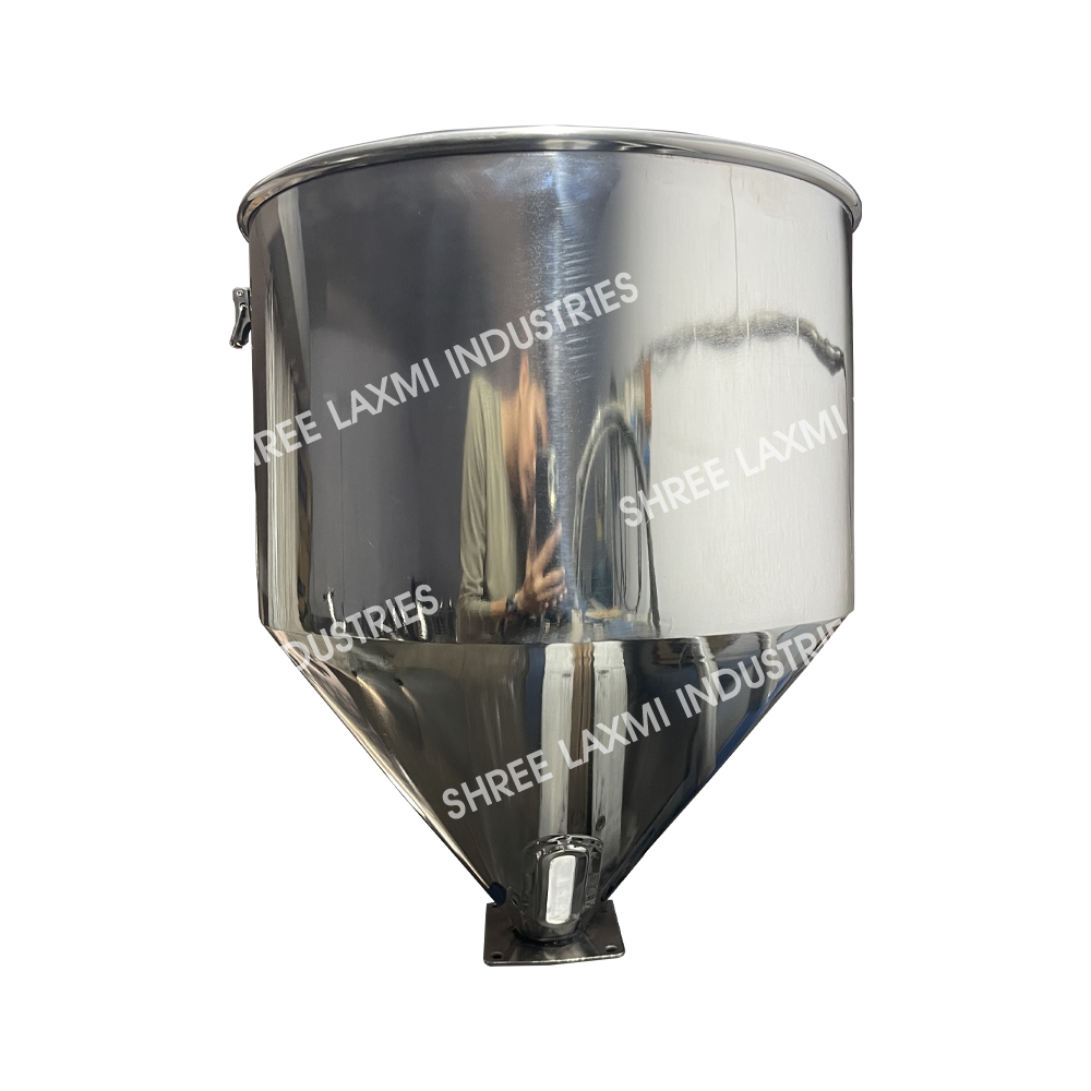 There are two types of hoppers, conical and wedge-shaped. The hopper shown below to the right is conical whereas a wedge-shaped hopper is a trough with a narrow slit, as shown to the left. Conical hoppers must be steeper to promote the same amount of flow but wedge-shaped hoppers require a conveyer to collect the materials that exit from it.We are a trusted name engaged in offering the quality Stainless Steel Conical Hopper that can withstand high temperature and pressure. It is designed using the finest quality stainless steel and contemporary technology as per the set industry norms. Also, we provide the offered product in various customized options as per the varied needs of the clients. Our precious clients can avail this Stainless Steel Hopper in various specifications at cost-effective prices.