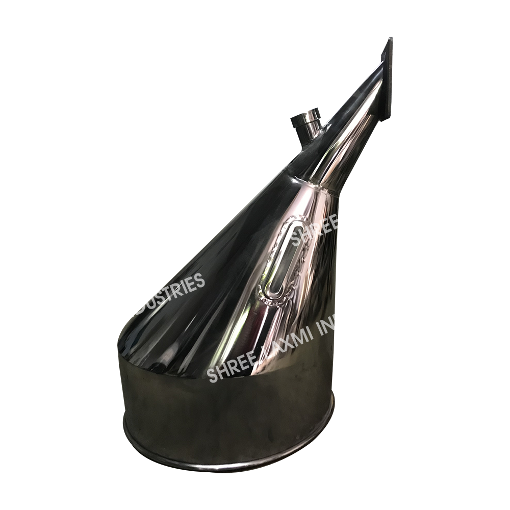 Fabrication Detail: Upper part of hopper is a rectangular shape with curved surface, and bottom part is made with narrow oval shape. Internal finishing of hopper given mirror and external finishing of hopper is matted or as per customize requirement.